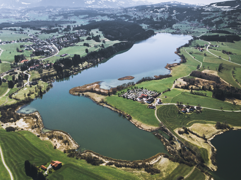 Der Niedersonthofener See gehört mit seinen 135 ha Wasserfläche zu den schönsten Voralpenseen Deutschlands. Er liegt im Westen Bayerns, im Herz des Allgäus zwischen Hügeln und Wälder eingebettet.